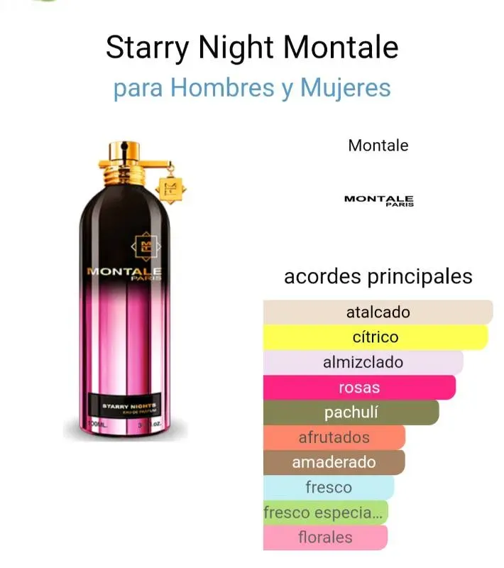 MONTALE STARRY NIGHT es una fragancia cautivadora que te transportará a un cielo estrellado lleno de misterio y elegancia. Con notas de bergamota, rosa y pachulí, esta fragancia única te envolverá en una atmósfera de sofisticación y encanto. ¡Descubre la magia de la noche con MONTALE STARRY NIGHT!