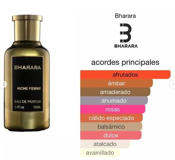 Inspirado en BHARARA NICHE FEMME, esta fragancia unisex te transportará a un mundo de elegancia y sofisticación. Con notas cautivadoras y duraderas, es la elección perfecta para quienes buscan destacar su personalidad con un toque distintivo. ¡Déjate envolver por su encanto!