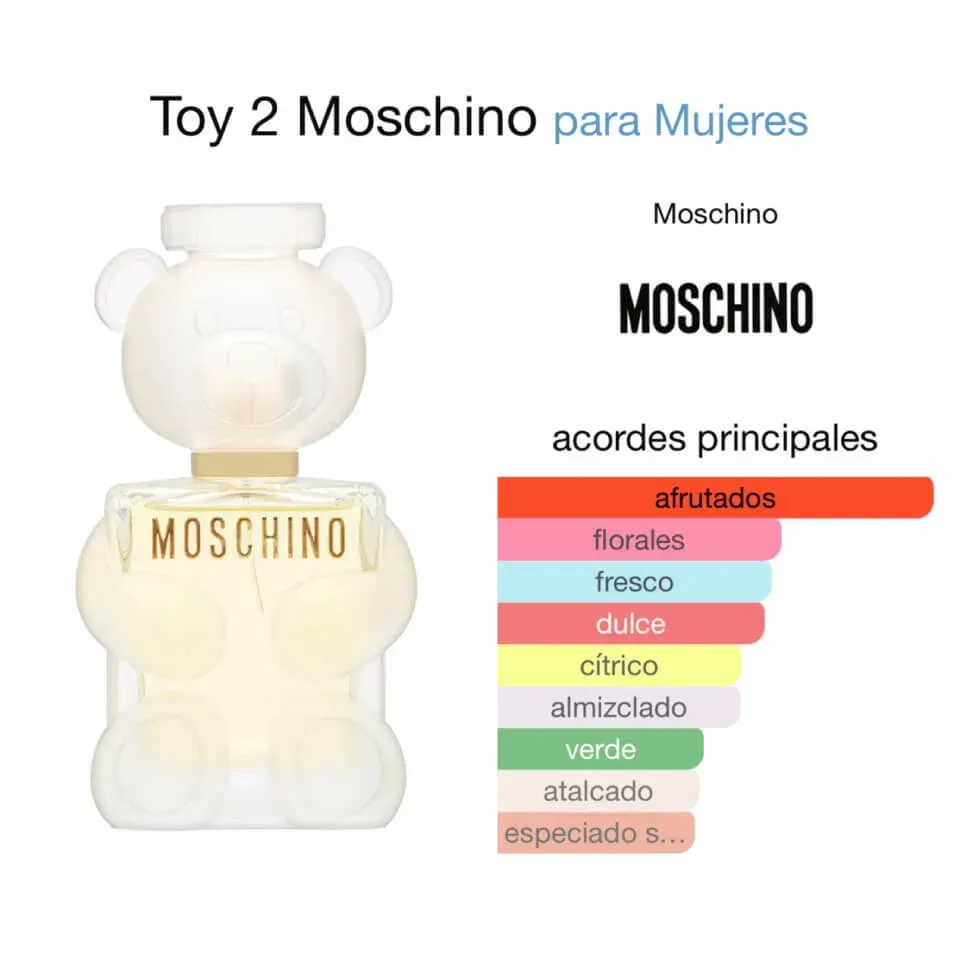 Toy 2 de Moschino es una fragancia de la familia olfativa Almizcle Floral Amaderado para Mujeres. Toy 2 se lanzó en 2018. Toy 2 fue creada por Alberto Morillas y Fabrice Pellegrin. Las Notas de Salida son manzana, mandarina y magnolia; las Notas de Corazón son grosella blanca, peonía y jazmín; las N...