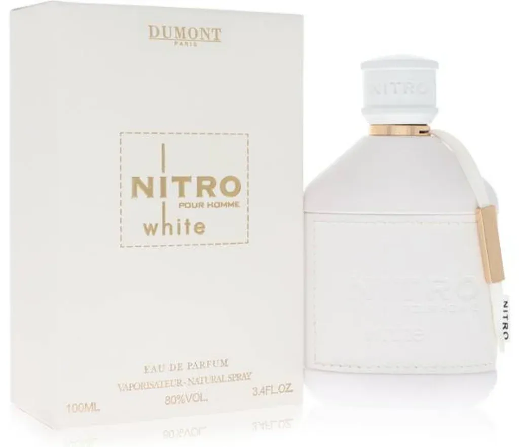 Nitro White de Dumont es una fragancia de la familia olfativa Cuero para Hombres. Esta fragrancia es nueva. Nitro White se lanzó en 2024. Las Notas de Salida son bayas de enebro, ciprés y iris; las Notas de Corazón son mirra y pachulí; las Notas de Fondo son vainilla, miel, ámbar, almizcle y cuero.