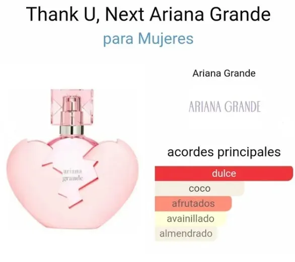Thank U Next de Ariana Grande es una fragancia de la familia olfativa Floral Frutal Gourmand para Mujeres. Esta fragrancia es nueva. Thank U, Next se lanzó en 2019. La Nariz detrás de esta fragrancia es Jerome Epinette. Las Notas de Salida son frambuesa y pera; las Notas de Corazón son coco y rosa r...