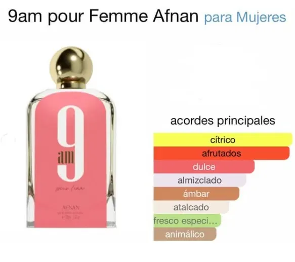 9am pour Femme de Afnan es una fragancia elegante y sofisticada para la mujer moderna. Con notas florales y amaderadas, esta fragancia te transportará a un jardín exuberante en plena primavera. Ideal para destacar tu feminidad y personalidad única. ¡Haz que cada mañana sea especial con 9am pour Femm...