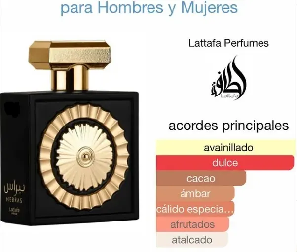 Lattafa Nebras es una fragancia exquisita y cautivadora que te transportará a un mundo de elegancia y sofisticación. Con notas dulces y amaderadas, esta fragancia única es perfecta para hombres y mujeres que buscan destacar su personalidad y dejar una impresión duradera.