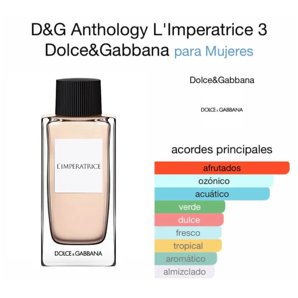 L’Imperatrice de Dolce & Gabbana es una fragancia vibrante y seductora que encarna la feminidad audaz y el espíritu libre. Con notas frutales y florales, esta fragancia te transportará a un jardín exuberante en plena primavera. ¡Déjate envolver por su frescura y elegancia incomparables!